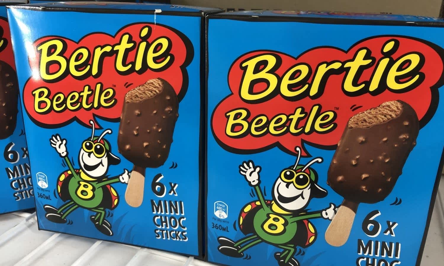 Previously making a limited-time-only appearance at Woolworths, Aldi has taken over the reigns, stocking Bertie Beetle coated paddle-pop-style ice creams.